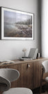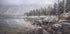 Et stille vinterøjeblik af Rostovskiy Anton: En frostklar bjergsø spejler sneklædte tinder, mens glatte sten og isrimede bredder leder blikket mod horisonten. Disen hænger lavt over mørke skovklædte skråninger, og den kølige palet af blå, grå og hvid indhyller rummet i ro og eftertænksomhed. Et motiv, der bringer stilhed ind i ethvert rum.