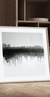 Winter Lake van Marina Nelson legt de stille schoonheid van een ijskoud meer vast. Een slanke rij kale bomen snijdt de horizon, terwijl de weerspiegeling in het stille water het motief verdubbelt. Monochrome tinten en royale negatieve oppervlakken geven een minimalistische, meditatieve uitdrukking die rust in de kamer creëert. Perfect voor een Scandinavisch, rustig interieurontwerp.