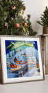Een winteravontuur van Gordon Bruce: een rustig, besneeuwd dorp onder de dans van het noorderlicht. Warm licht stroomt uit de huizen, een stenen brug overspant een bevroren stroom en de sparren staan zwaar van de vorst. Pittoreske penseelstreken en een diepe nachtelijke hemel zorgen voor rust, nostalgie en wintermagie in huis. Perfect voor kerstsfeer en rustige winteravonden.