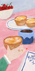 En varm hyldest til Lissabon: en hyggelig bordscene med sort kaffe, friske kirsebær og sprøde pastéis de nata. I en minimalistisk, retro farvepalet inviterer motivet til rolig hverdagsluksus og rejsefeber. Naiv, moderne streg af kunstneren Dirkie Nell, perfekt til køkken, kaffe-krog og mediterran stemning.