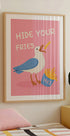 Een gekke en humoristische illustratie van een zeemeeuw die friet steelt, met de speelse tekst “Hide Your Fries.” Deze kleurrijke poster brengt strandgevoel en brutale charme in huis en is perfect voor de keuken, kinderkamer of interieurs waar humor en licht design omarmd worden.