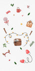 Een mooie aquarelillustratie van Xuan Thai die de magie van Kerstmis vastlegt met een gezellig peperkoekhuisje, zuurstokken en kleurrijke lolly's, warme wanten en fonkelende lichtslingers. Kawaiidetails, rendiergeweien en kleine geschenkverpakkingen creëren een speelse sfeer - perfect voor kinderkamers en winterse gezelligheid. Ideaal als seizoensdecoratie.