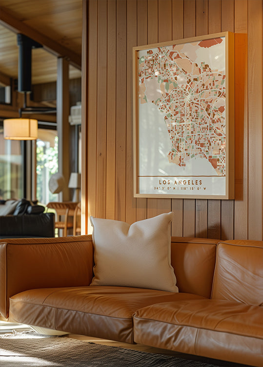 Black Maps Earth Tones 42 van Emiliano Deificus toont een gestileerde kaart van Los Angeles in diepe, aardse tinten. Fijnmazige straten, Hollywood-heuvels en de contouren van de kust vormen een elegant, grafisch patroon dat het ritme van de grote stad vastlegt en een perfect statement maakt in zowel moderne als klassieke ruimtes. Hang hem solo of in een fotowand.