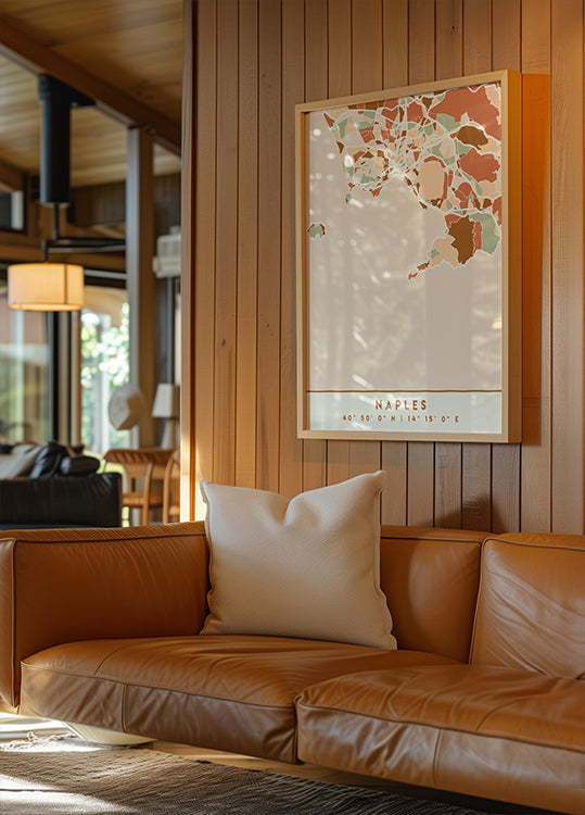 Black Maps Earth Tones 58 van Emiliano Deificus legt Napels vast als een poëtische, donkere kaart, waar warme aardetinten het stratennetwerk, de wijken en de kronkelende kust tekenen. De subtiele contrasten benadrukken het ritme van de stad en zorgen voor een verfijnde, grafische expressie die rust, diepte en karakter aan de muur brengt. Creëert een rustige focus.