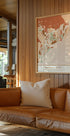 Emiliano Deificus brengt de stad in rijke aardetinten en inktzwarte tinten in kaart: een strak cartografisch portret van Panama City, waar kustlijnen, lanen en lengte- en breedtegraden een rustig dramatisch tapijt weven. Deze stedelijke studie is minimaal en toch ingewikkeld en brengt de contouren van de Stille Oceaan en grootstedelijke energie naar uw muren.