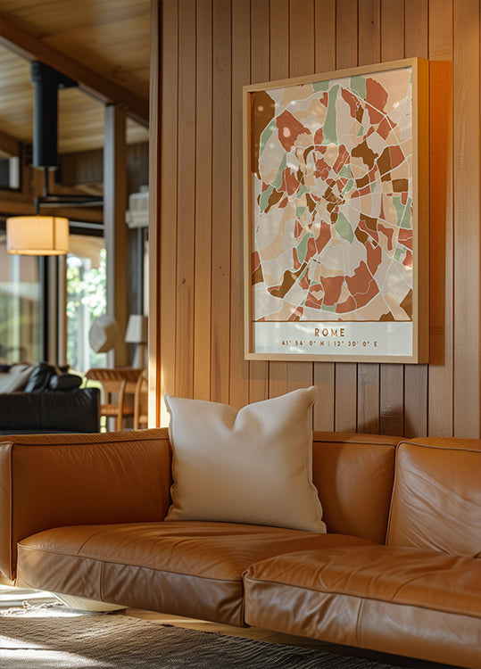 Een suggestieve stadsplattegrond van Rome in aardetinten: dicht stratennetwerk, elegante rivierlijnen en karakteristieke wijken getekend in diepzwarte velden en warme, gedempte tinten. Emiliano Deificus combineert grafische precisie en poëtische rust in een minimalistische expressie die zowel moderne als klassieke ruimtes naar een hoger niveau tilt. Perfect als eyecatcher in de woonkamer, kantoor of inkomhal.