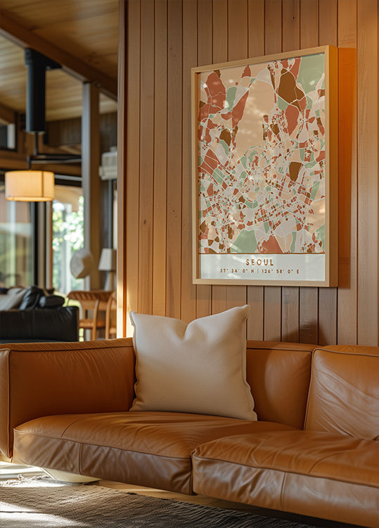 Een elegante, donkere kaart van Seoel in aardetinten, waarbij het stratennetwerk, de buurten en de contouren van de stad in gedetailleerde graphics opvallen. Het gedempte palet geeft een rustige, moderne uitstraling die zowel bij de woonkamer als op kantoor past. Onderdeel van de serie Black Maps Earth Tones, gemaakt door Emiliano Deificus. Perfect voor kaartliefhebbers en stedelijke interieurs.