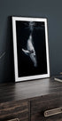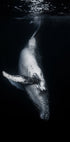 Een adembenemende onderwaterfoto van een bultrug, vastgelegd tegen de diepe zwarte zee. Dit opvallende natuurkunstwerk benadrukt de majestueuze schoonheid van de walvis terwijl hij net onder het oppervlak glijdt en kracht, kalmte en verwondering uitstraalt.